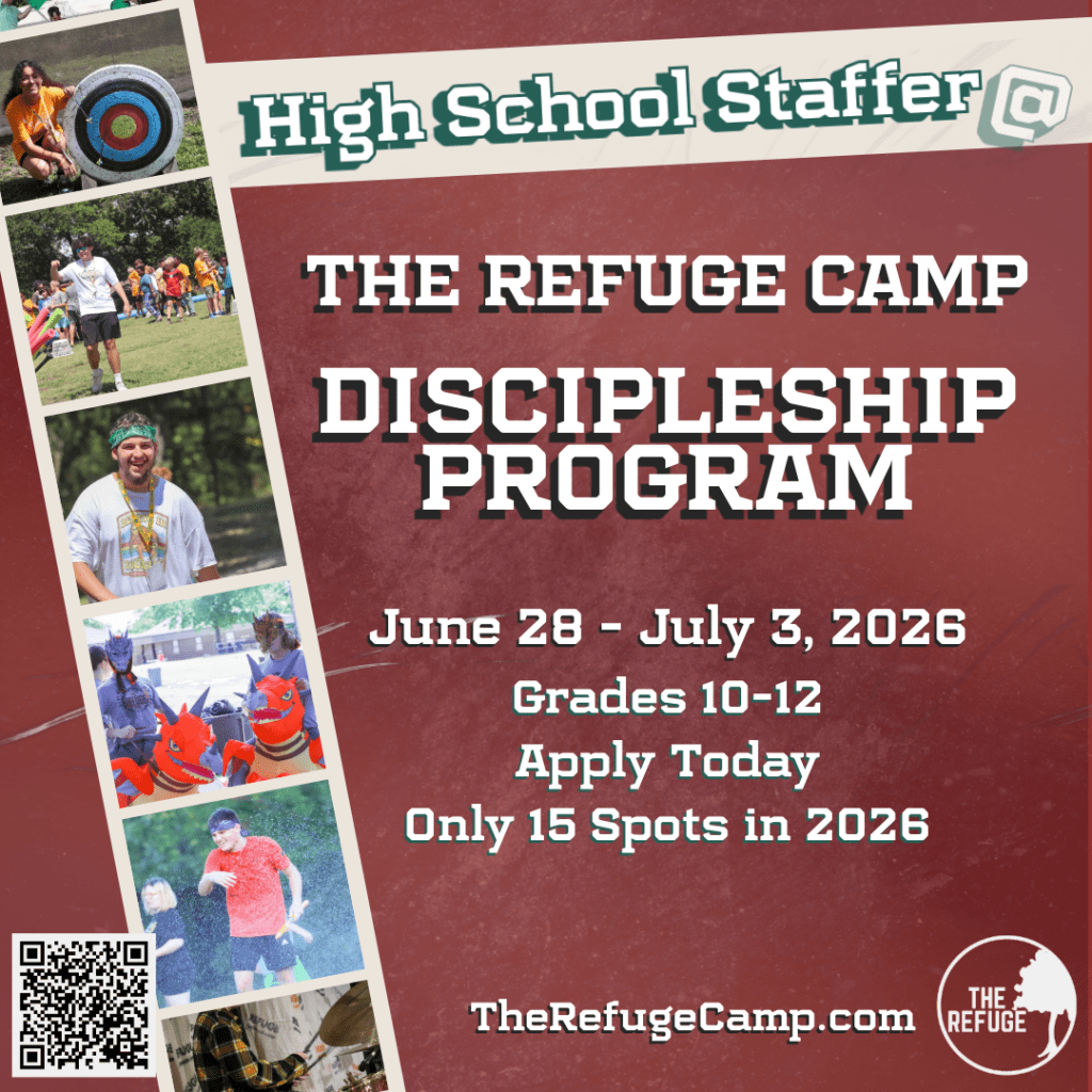 The Refuge is now offering a discipleship program for high schoolers, for students entering 10-12 grades! Featuring opportunities to serve on one of the program staff teams. This will include special Bible Studies, team-building activities, and possibilities for mentorship relationships.